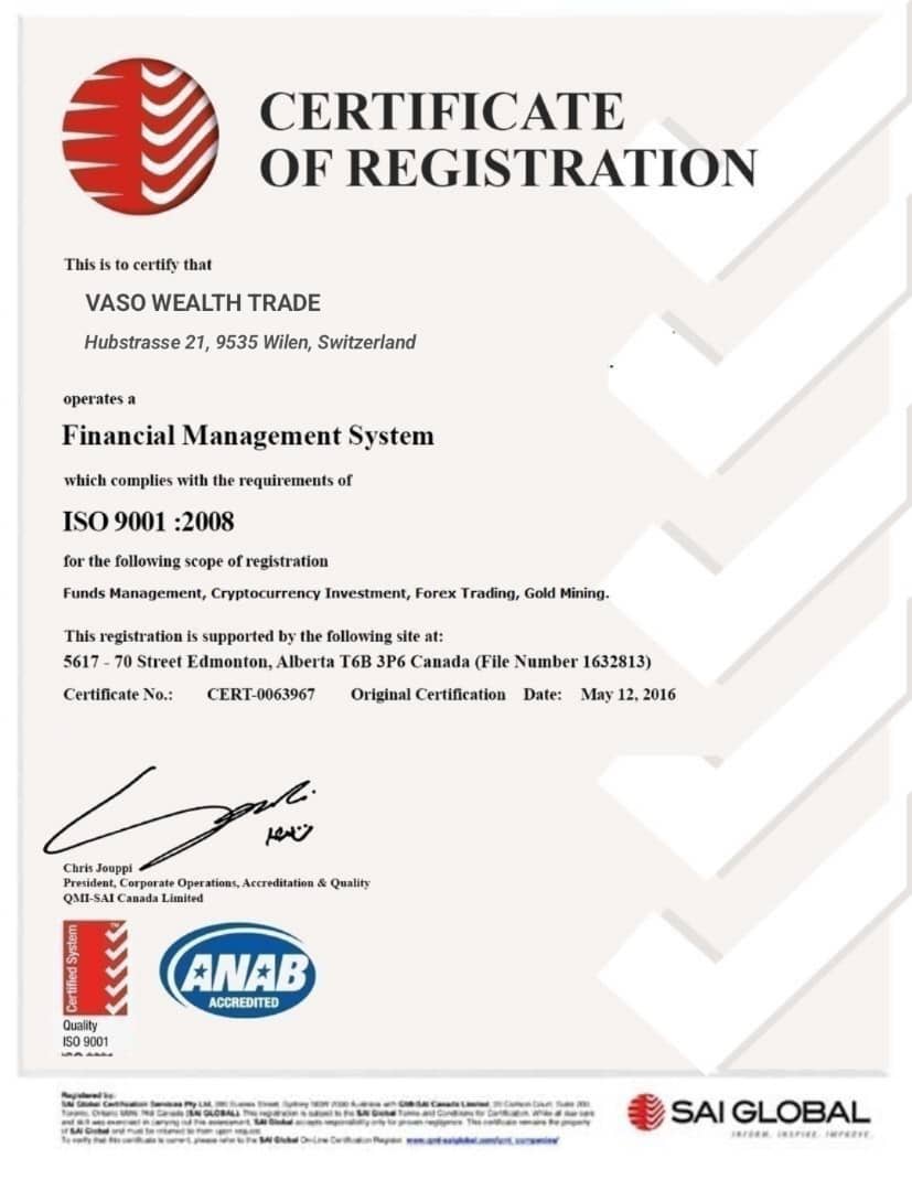 Vaso Wealth Trade IS AN OPTIMAL WEALTH MANAGEMENT COMPANY EMPLOYING THE BEST TRADING STRATEGIES TO GUARANTEE RETURN ON INVESTMENT. Vaso Wealth Trade HAS QUALIFIED FINANCIERS/TRADERS THAT MANAGE AND PROVIDE FINANCIAL CONSULTING SERVICES TO THEIR INVESTORS. WE PRIDE OURSELVES WITH A WORLD CLASS PROFESSIONAL CUSTOMER SERVICE, UNIQUE TRADING STRATEGIES, OPTIMUM TRANSPARENCY AND FIDELITY. WE OFFER DIFFERENT INVESTMENT PLANS AND EACH ALLOWS FOR THE FUNDS INVESTED WITH Vaso Wealth Trade TO BE WITHDRAWN, TRANSFERRED OR REINVESTED AT WILL. WE ARE BASED IN CHULA VISTA, CA 91910 UNITED STATES BUT WE ARE AVAILABLE TO PEOPLE OF ALL NATIONALITY WHO ARE INTERESTED IN HAVING THEIR PORTFOLIOS MANAGED AND PROFIT RETURNED DAILY. Vaso Wealth Trade USER ORIENTED WEBSITE COMBINED WITH SOLID FINANCIAL BACKING, STANDS OUT IN THE FIELD OF ONLINE TRADING. FROM OUR 24 HOUR MULTILINGUAL SUPPORT CENTRES SPREAD ACROSS ALL SOCIAL MEDIA TO OUR VARIOUS AND INTERESTING INVESTMENT OFFERS AND SERVICES. Vaso Wealth Trade HAVE SUCCESSFULLY CREATED AN OPTIMAL TRADING ENVI